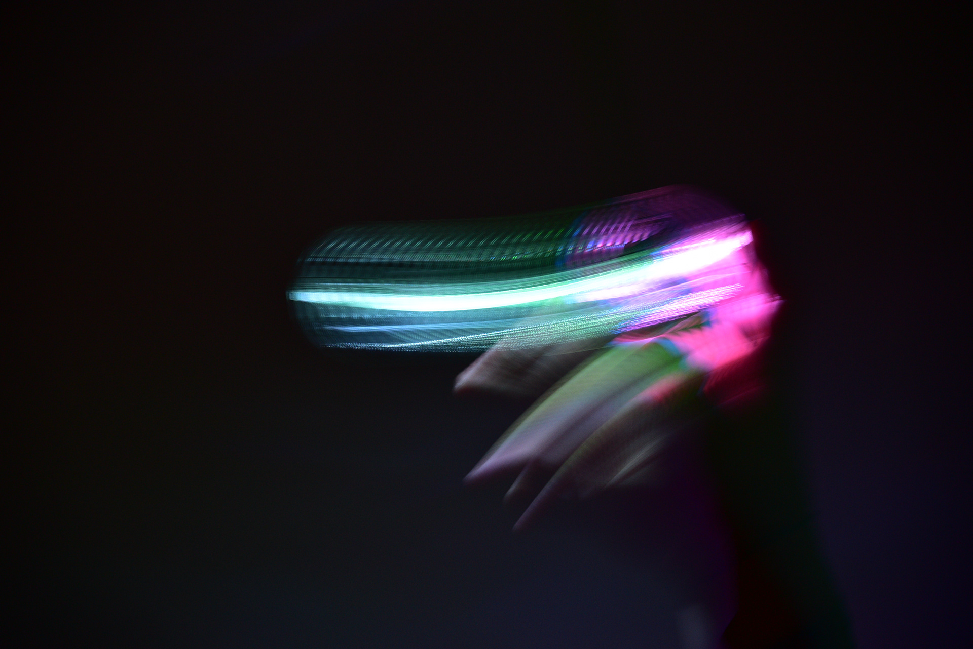 The sound and light is created and altered by the amplitude of modulation. This amplitude is measured via a potentiometer which sends the data through to Arduino. This amplitude is then translated into sound via PureData. The pendulums were intended to all have different lengths, and thus create different sounds based on a pentatonic scale. The intended goal for the game is to match colors and thus, match sound and frequency of modulation to create for one harmonic piece.